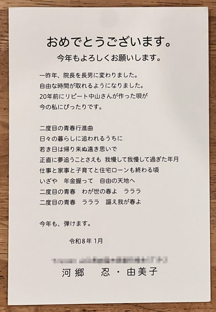 老医師ですが、今年もよろしくお願いいたします。